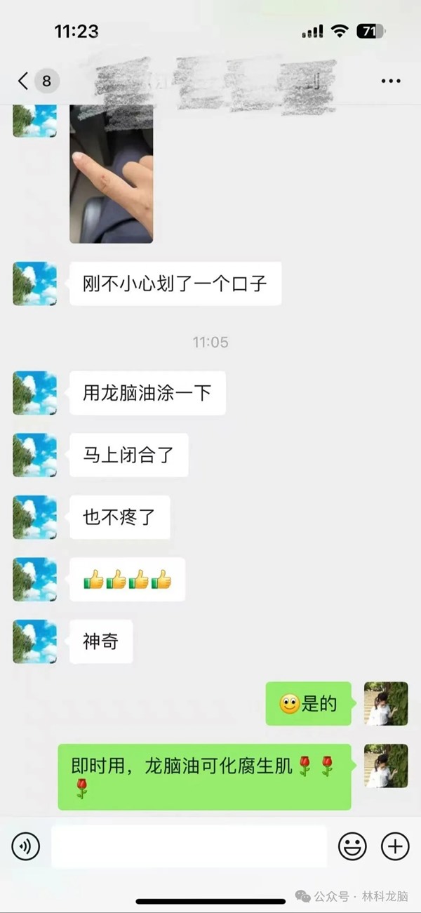 “這么舒服的東西,還想繼續購買。” 當她終于通過一個電話聯系到我們時,第一句話是“你們的產品在哪里能購買”,是“你們的龍腦精油,真的很好用!我全網找了一通,終于找到了你們!”。